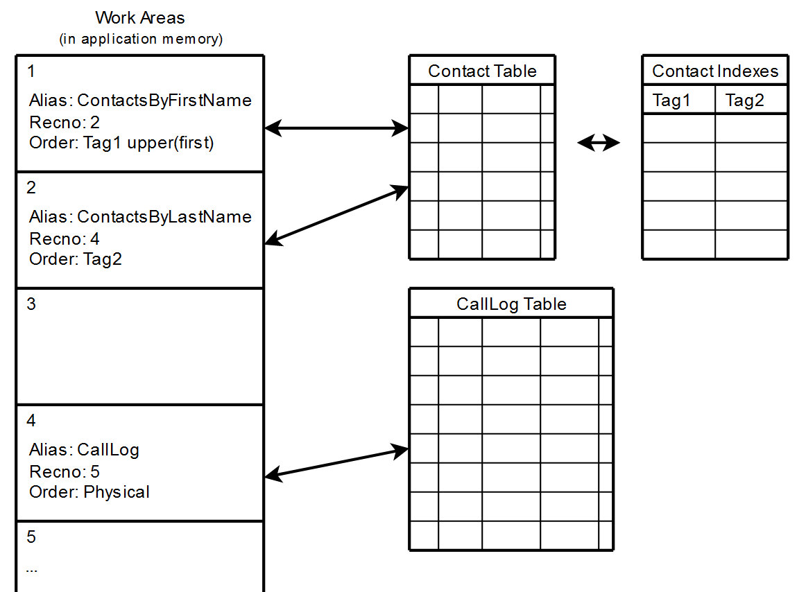 - Work areas,Tables and Indexes.